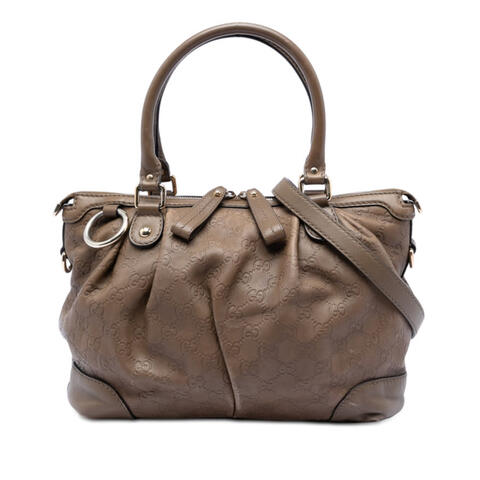 The pre-owned Gucci Guccissima Sukey Satchel is a timeless handbag that combines elegant design with everyday versatility. Crafted from embossed leather, this sophisticated satchel features rolled leather handles, a detachable flat leather strap, and a secure top zip closure, while the interior includes both zip and slip pockets for organized storage. With dimensions of 9.45 x 11.02 x 4.72 inches, this designer bag offers a stylish and practical silhouette that reflects luxury and contemporary style.<br /><br /> Designed for both fashion and functionality, this Gucci Sukey Satchel is an excellent choice for women seeking a refined handbag that transitions effortlessly from day to evening. The embossed leather finish adds signature appeal, while the structured shape and included shoulder strap provide flexible carrying options to suit your lifestyle. Its spacious interior and classic Gucci styling make it a dependable and fashionable accessory that is perfect for everyday use.<br /><br /> This authentic pre-owned Gucci Guccissima Sukey Satchel, model KO09DVZ2MLRHVML3, is a smart way to add a coveted designer handbag to your collection. Condition Rating: B+. Pre-owned condition details: Exterior Back Worn. Exterior Bottom Worn. Exterior Corners Worn. Exterior Front Worn. Exterior Handle/Strap Cut Stitching, Scratched, Worn. Exterior Side Worn. Exterior Top Worn. Hardware Practical Attachment Scratched. Zipper Scratched. Interior Lining Stained With Others. Interior Pocket Stained With Others. Inclusions: Shoulder Strap. This is a great opportunity to own an authentic handbag at a more accessible price.