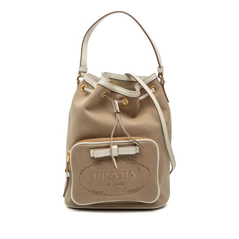 Pre-owned Prada Canvas Canapa Logo Bow Drawstring Bucket Bag Ladies JC15A0YXAQ8RE73X (LPN403330)