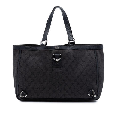The pre-owned Gucci GG Denim Abbey D-Ring Tote is a stylish designer handbag that blends iconic branding with versatile wearability. Crafted from durable GG denim with leather trim, this tote features flat leather straps, an open top with a magnetic closure, and convenient interior zip and slip pockets for easy organization. Its spacious silhouette and signature Gucci appeal make it an elegant choice for anyone seeking luxury and contemporary style.<br /><br /> Designed for both fashion and functionality, this Gucci Abbey D-Ring tote offers the ideal balance of everyday practicality and timeless designer charm. Measuring approximately 10.24 x 15.35 x 3.94 inches, it provides ample space for daily essentials while maintaining a sleek, sophisticated profile. Whether paired with casual denim or a polished daytime look, this authentic Gucci tote is perfect for everyday use.<br /><br /> This pre-owned Gucci GG Denim Abbey D-Ring Tote, model GG Denim Abbey D Ring Tote, Item# AR7S7LK3BYIA558D, is a smart option for buyers looking for authentic luxury at a better value. Condition Rating: B+. Comments: Exterior Back Stained With Others. Exterior Bottom Stained With Others. Exterior Corners Worn. Exterior Front Stained With Others. Exterior Handle/Strap Stained With Others, Worn. Exterior Side Stained With Others, Cut Stitching. Exterior Top Worn. Hardware Closure Scratched. Hardware Practical Attachment Scratched. Zipper Scratched. Interior Lining Worn. Interior Pocket Worn. Inclusions: None. This is a great opportunity to own an authentic handbag at a more accessible price.