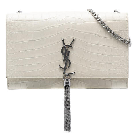 The Saint Laurent Medium Croc Embossed Leather Monogram Kate Tassel Crossbody is a timeless designer handbag that blends elegance with signature YSL appeal. Crafted from embossed leather and finished with a tassel detail, this chic crossbody features a silver-tone curb chain link shoulder strap, a front flap with magnetic snap closure, and an interior slip pocket for essential organization. Its compact yet sophisticated silhouette makes it a standout accessory for day-to-night wear, offering luxury and contemporary style. <br /><br /> Designed for both fashion and functionality, this pre-owned Saint Laurent Kate crossbody is an ideal choice for carrying your essentials in polished designer style. With dimensions of 6.10 x 9.45 x 2.17 inches, it offers a sleek profile that is easy to wear while still providing enough space for your daily necessities. Whether paired with casual looks or dressier outfits, this authentic Saint Laurent handbag is perfect for everyday use. <br /><br /> This pre-owned Saint Laurent Medium Croc Embossed Leather Monogram Kate Tassel Crossbody is a stylish and smart way to add a coveted luxury piece to your collection. Condition Rating: B+. Comments: Exterior Back Creased, Stained With Others. Exterior Bottom Worn, Stained With Others. Exterior Corners Worn. Exterior Front Stained With Others, Creased. Exterior Side Stained With Others, Worn. Exterior Top Stained With Others. Hardware Practical Attachment Scratched. Zipper Scratched. Interior Lining Stained With Others. Inclusions: None. Model: Medium Croc Embossed Leather Monogram Kate Tassel Crossbody. Item# MSAFV1M7DLGEH0O4. Pre-owned Saint Laurent Medium Croc Embossed Leather Monogram Kate Tassel Crossbody Ladies MSAFV1M7DLGEH0O4. This is a great opportunity to own an authentic handbag at a more accessible price.