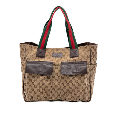Pre-owned Gucci GG Canvas Web Double Pockets Tote Ladies F7MF78KETZI3AA8M - 161836-203998 (LPN403439)