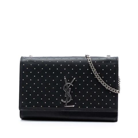Pre-owned Saint Laurent Medium Leather Studded Monogram Kate Crossbody Ladies 3ZW2GFWWMZTANGT7 is a chic designer handbag that combines timeless elegance with edgy detailing. Crafted from leather and accented with striking stud details, this Saint Laurent Kate crossbody features a chain link shoulder strap, a front flap with the iconic metal YSL logo, a magnetic snap closure, and an interior slip pocket for easy organization. With dimensions of 6.10 x 9.45 x 1.57 inches, it offers a sleek silhouette that makes it ideal for day-to-night wear, blending luxury and contemporary style.<br /><br /> Designed for both fashion and functionality, this Saint Laurent crossbody bag is a versatile accessory that elevates any wardrobe. The refined leather body, signature monogram hardware, and compact yet practical interior make it an excellent choice for carrying essentials in style. Whether paired with casual looks or dressed up for an evening out, this authentic Kate bag delivers designer appeal and modern sophistication, making it perfect for everyday use.<br /><br /> This pre-owned Saint Laurent Medium Leather Studded Monogram Kate Crossbody is a stylish way to own a coveted luxury handbag while enjoying added value. Condition Rating: B+. Comments: Exterior Back Scratched. Exterior Bottom Worn. Exterior Corners Worn. Exterior Front Scratched. Exterior Side Stained With Others. Exterior Top Worn. Hardware Closure Scratched. Hardware Embellishment Scratched. Hardware Practical Attachment Scratched. Interior Lining Scratched, Stained With Others. Inclusions: None. Model: Medium Leather Studded Monogram Kate Crossbody. Item# 3ZW2GFWWMZTANGT7. This is a great opportunity to own an authentic handbag at a more accessible price.