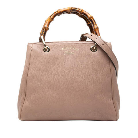 Pre-owned Gucci Small Calfskin Bamboo Shopper Satchel crafted in calfskin leather, featuring elegant bamboo top handles, an adjustable and detachable flat leather strap, an open top with a magnetic closure, and a well-organized interior with zip and slip pockets. With dimensions of 9.45 x 10.63 x 4.33 inches, this designer satchel offers a refined silhouette that blends timeless appeal with luxury and contemporary style.<br /><br /> Designed for both fashion and functionality, this Gucci Bamboo Shopper satchel is a versatile handbag that transitions effortlessly from day to evening. The spacious interior and practical pocket layout make it easy to carry your daily essentials, while the detachable shoulder strap adds convenience and styling flexibility, making it perfect for everyday use.<br /><br /> This authentic pre-owned Gucci handbag includes the shoulder strap and presents a wonderful chance to invest in an iconic luxury accessory with signature house details. Rating: AB. Condition for pre-owned: Exterior Corners Worn. Exterior Handle/Strap Out of Shape, Scratched. Exterior Side Worn. Exterior Top Worn. Hardware Practical Attachment Rusty/Tarnished, Scratched. Zipper Scratched. Interior Lining Stained With Others. Interior Pocket Stained With Others. This is a great opportunity to own an authentic handbag at a more accessible price.
