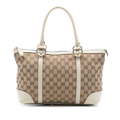 The pre-owned Gucci GG Canvas Lovely Tote is a chic and practical handbag that blends the brands signature elegance with everyday versatility. Crafted with a durable canvas body and refined leather trim, this designer tote features rolled leather handles, a secure top zip closure, and interior zip and slip pockets for easy organization. Measuring 9.06 x 12.20 x 5.31 inches, it offers a compact yet functional silhouette that reflects luxury and contemporary style. <br /><br /> Designed for both fashion and functionality, this Gucci GG Canvas Lovely Tote is an ideal choice for carrying your daily essentials in style. The thoughtfully designed interior pockets help keep belongings organized, while the classic GG canvas exterior adds timeless designer appeal to any wardrobe. Whether paired with casual looks or polished outfits, this authentic Gucci tote is perfect for everyday use. <br /><br /> This authentic pre-owned Gucci handbag is a stylish option for luxury lovers seeking designer quality at a more attainable value. Model: GG Canvas Lovely Tote. Item# WQM5R8M40WYI3K3Y. Condition Rating: B+. Comments: Exterior Back Scratched, Creased. Exterior Bottom Creased, Stained With Others. Exterior Corners Worn. Exterior Front Creased. Exterior Handle/Strap Worn, Creased. Exterior Side Creased, Scratched. Exterior Top Worn, Stained With Others. Hardware Practical Attachment Scratched. Zipper Scratched. Interior Lining Stained With Transfer of Color, Worn. Interior Pocket Worn. Inclusions: None. This is a great opportunity to own an authentic handbag at a more accessible price.