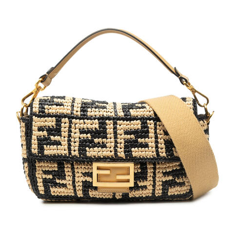 Pre-owned Fendi Zucca Raffia Baguette Satchel Ladies EVX4Q46FM1RII5EF is a chic designer handbag that blends iconic Fendi appeal with modern versatility. Crafted with a woven raffia body, this stylish Baguette bag is finished with a flat leather top handle, a detachable flat leather strap, and a signature front flap with magnetic closure. Its compact yet elegant silhouette measures 6.69 x 9.45 x 2.36 inches, making it an ideal choice for day-to-night wear while showcasing luxury and contemporary style.<br /><br /> Designed for both fashion and functionality, this Fendi Zucca Raffia Baguette Satchel offers a practical interior zip pocket to help keep essentials organized, while the included shoulder strap adds convenient carrying options. The refined combination of raffia texture and leather detailing gives this authentic Fendi handbag a timeless designer look that pairs beautifully with both casual and elevated outfits, making it perfect for everyday use.<br /><br /> This authentic pre-owned Fendi handbag is a smart choice for collectors and style lovers seeking a sought-after luxury accessory at a more attainable value. Rating: AB. Condition for pre-owned: Exterior Front Worn. Exterior Top Stained With Transfer of Color. Hardware Closure Scratched. Hardware Practical Attachment Scratched. Zipper Scratched. Inclusions: Shoulder Strap. Model: Zucca Raffia Baguette Satchel. Item# EVX4Q46FM1RII5EF. This is a great opportunity to own an authentic handbag at a more accessible price.