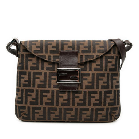 The Fendi Zucca Canvas Double Flap Shoulder Bag is a timeless designer accessory that blends iconic branding with practical elegance. Crafted with a durable canvas body, this sophisticated shoulder bag features an adjustable flat leather strap and double flaps with a magnetic snap closure for a polished, secure finish. Its compact yet functional size, measuring 8.66 x 11.02 x 1.18 inches, makes it a stylish choice for carrying daily essentials with luxury and contemporary style.<br /><br /> Designed for both fashion and functionality, this pre-owned Fendi shoulder bag offers a versatile silhouette that transitions effortlessly from day to evening. The interior includes a convenient zip pocket to help organize your essentials, while the classic Zucca canvas design showcases the signature appeal Fendi is known for. Whether paired with casual looks or elevated ensembles, this authentic designer handbag is perfect for everyday use.<br /><br /> Pre-owned Fendi Zucca Canvas Double Flap Shoulder Bag Ladies Q6G72JRH0ZAL4XTN. Model: Zucca Canvas Double Flap Shoulder Bag. Item# Q6G72JRH0ZAL4XTN. Inclusions: Dust bag. Condition Rating: B. Comments: Exterior Front Worn. Exterior Handle/Strap Worn. Interior Lining Sticky. This is a great opportunity to own an authentic handbag at a more accessible price.