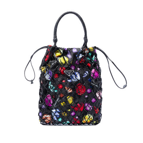 Pre-owned Prada Mesh Leather and Floral Printed Tessuto Tote Ladies AMGNZDAM8M2OGJJ2 (LPN403638)