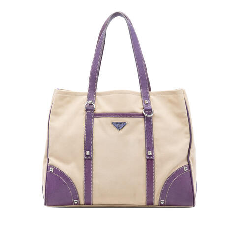 Pre-owned Prada Studded Leather Trimmed Canvas Front Pocket Tote Ladies COGBIVZTMZLDWLCC (LPN403654)