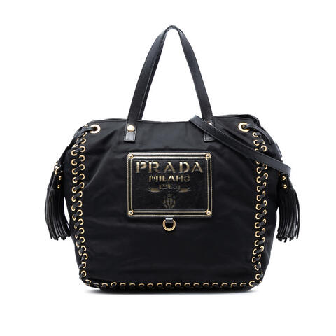 The Prada Tessuto Whipstitched Logo Oro Tassel Satchel is a chic and versatile handbag that blends iconic design with practical elegance. Crafted with a durable nylon body, this stylish satchel features flat leather handles, a detachable flat leather strap, an open top with a magnetic snap closure, and an interior zip pocket for added organization. With dimensions of 11.42 x 11.42 x 5.12 inches, it offers a balanced size that is ideal for daily essentials while showcasing Pradas signature luxury and contemporary style.<br /><br /> Designed for both fashion and functionality, this pre-owned Prada satchel is a standout accessory for women who appreciate designer craftsmanship and timeless appeal. The whipstitched detailing, Logo Oro accent, and tassel embellishment give the bag a refined yet modern look, while the included shoulder strap offers flexible carrying options. Its lightweight nylon construction and thoughtfully designed interior make it a smart and stylish choice, perfect for everyday use.<br /><br /> This pre-owned Prada Tessuto Whipstitched Logo Oro Tassel Satchel is rated B+ and remains a desirable option for luxury handbag lovers seeking authentic designer fashion at a more attainable value. Condition details include: Exterior Back Stained With Others. Exterior Bottom Worn. Exterior Front Worn, Stained With Others, Scratched. Exterior Handle/Strap Cracked, Stained With Others, Creased, Worn. Exterior Side Stained With Others. Exterior Top Worn, Cracked. Hardware Closure Scratched. Hardware Practical Attachment Scratched. Zipper Scratched. Interior Lining Stained With Others, Worn. Inclusions: Shoulder Strap. Model: Tessuto Whipstitched Logo Oro Tassel Satchel. Item# ASYPKRNVFQUON440. Pre-owned Prada Tessuto Whipstitched Logo Oro Tassel Satchel Ladies ASYPKRNVFQUON440. This is a great opportunity to own an authentic handbag at a more accessible price.