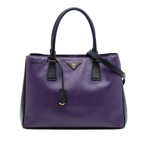 The Prada Medium Bicolor Saffiano Lux Galleria Satchel is a timeless designer handbag that combines elegance with everyday versatility. Crafted from durable Saffiano leather, this iconic Prada satchel features rolled leather handles, an adjustable and detachable flat shoulder strap, an open top with magnetic snap closure, and a well-organized interior with a zip compartment, zip pocket, and slip pockets. Measuring 9.25 x 13.19 x 5.91 inches, this pre-owned Prada handbag is an ideal choice for anyone seeking luxury and contemporary style. <br /><br /> Designed for both fashion and functionality, this Prada Galleria Satchel offers the perfect balance of sophistication and practicality. Its bicolor design adds a refined modern touch, while the structured silhouette makes it a standout accessory for work, travel, or daily errands. Included with the bag are the shoulder strap and charm, enhancing both its style and convenience, making it perfect for everyday use. <br /><br /> This pre-owned Prada Medium Bicolor Saffiano Lux Galleria Satchel is rated Condition B+ and remains a desirable option for collectors and fashion lovers alike. Comments: Exterior Back Creased, Stained With Others. Exterior Corners Stained With Others, Worn. Exterior Front Stained With Others. Exterior Handle/Strap Scratched, Creased, Worn, Stained With Others. Exterior Side Worn, Creased. Exterior Top Stained With Others, Cracked. Hardware Closure Scratched. Hardware Embellishment Scratched. Hardware Practical Attachment Scratched. Zipper Scratched. Interior Lining Scratched, Stained With Others. This is a great opportunity to own an authentic handbag at a more accessible price.