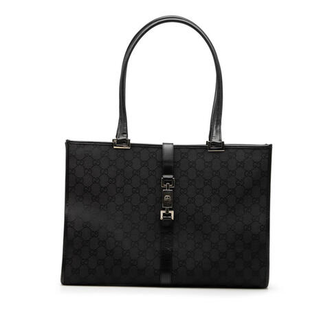 The pre-owned Gucci GG Canvas Jackie Tote is a timeless designer handbag that blends iconic elegance with everyday versatility. Crafted with Guccis signature GG canvas and refined leather trim, this stylish tote features rolled leather handles, a top strap with a push-lock closure, and an interior zip pocket for added organization. Measuring 10.24 x 14.57 x 3.94 inches, it offers a practical size for daily essentials while showcasing luxury and contemporary style.<br /><br /> Designed for both fashion and functionality, this authentic Gucci Jackie Tote is a sophisticated choice for anyone seeking a classic luxury handbag with lasting appeal. The spacious silhouette and secure closure make it easy to carry your belongings in style, while the interior zip pocket helps keep smaller items neatly stored. Whether paired with casual looks or elevated outfits, this designer tote is perfect for everyday use.<br /><br /> This pre-owned Gucci GG Canvas Jackie Tote is rated B+ and shows signs of gentle wear consistent with previous use. Comments: Exterior Bottom Creased, Scratched, Worn. Interior Lining Stained With Others. Exterior Corners Worn. Exterior Side Worn, Stained With Others, Scratched. Exterior Handle/Strap Scratched, Cracked, Worn. Interior Pocket Stained With Others. Exterior Top Worn. Hardware Practical Attachment Rusty/Tarnished, Scratched. Hardware Closure Rusty/Tarnished, Scratched. Exterior Back Stained With Others. Zipper Scratched. Exterior Front Scratched, Stained With Others. Inclusions: None. Model: GG Canvas Jackie Tote. Item# H8O1TCPG5ZK5MBIP. This is a great opportunity to own an authentic handbag at a more accessible price.
