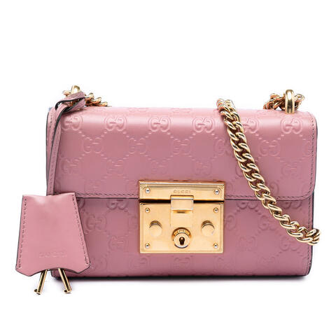 The Gucci Small Guccissima Padlock Crossbody is a chic and timeless designer handbag crafted from embossed leather with elegant gold-tone chain straps. Featuring a signature front flap with a push lock closure, this compact luxury bag also includes an exterior back slip pocket and an interior slip pocket for added convenience. Its refined silhouette and iconic details make it an excellent choice for anyone seeking luxury and contemporary style.<br /><br /> Designed for both fashion and functionality, this pre-owned Gucci crossbody bag offers a sophisticated look in a versatile size, measuring 5.31 x 7.87 x 2.36 inches. The combination of premium materials, practical pocket space, and the classic Padlock design makes it ideal for carrying essentials while complementing both casual and elevated outfits, making it perfect for everyday use.<br /><br /> This pre-owned Gucci Small Guccissima Padlock Crossbody includes Charm and Key and presents a valuable option for collectors and fashion lovers alike. Condition Rating: B+. Comments: Exterior Back Worn, Creased. Exterior Corners Worn. Exterior Front Worn. Exterior Side Stained With Others. Exterior Top Scratched, Stained With Transfer of Color. Hardware Closure Scratched. Hardware Practical Attachment Scratched. Zipper Scratched. Interior Lining Stained With Others, Sticky. This is a great opportunity to own an authentic handbag at a more accessible price.