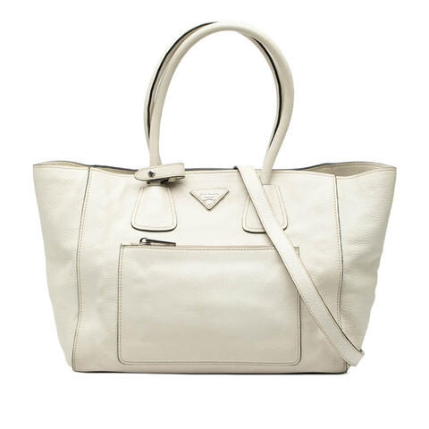 Pre-owned Prada Vitello Daino Front Pocket Open Convertible Tote Ladies PZ0YYXT76GZFICTB (LPN403772)