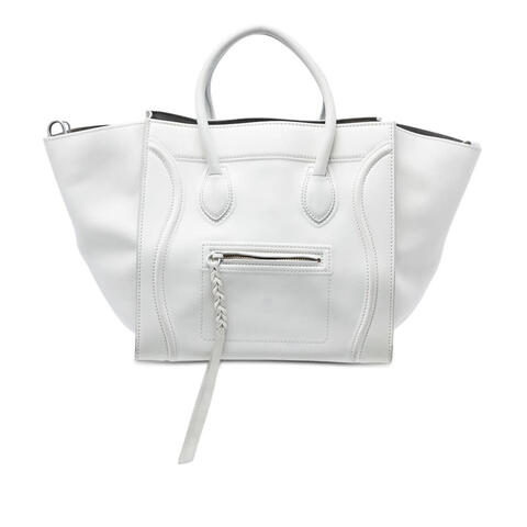 The pre-owned Celine Medium Leather Phantom Luggage Tote is a timeless designer handbag that combines iconic structure with everyday versatility. Crafted from leather, this sought-after tote features rolled leather handles, an open top, an exterior zip pocket, and an interior zip pocket, offering both elegance and practicality. With dimensions of 11.42 x 11.61 x 8.27 inches, it provides a spacious yet refined silhouette that reflects luxury and contemporary style.<br /><br /> Designed for both fashion and functionality, this Celine Phantom Luggage Tote is an excellent choice for those seeking a sophisticated handbag with ample room for daily essentials. Its classic shape and designer appeal make it easy to pair with both casual and polished looks, while the functional pocket layout helps keep your belongings organized. Whether you're headed to work, shopping, or meeting friends, this stylish tote is perfect for everyday use.<br /><br /> This authentic pre-owned Celine handbag is offered in Condition Rating: B+. Comments: Exterior Back Worn, Stained With Others. Exterior Bottom Stained With Others. Exterior Corners Stained With Others, Worn. Exterior Front Stained With Others. Exterior Handle/Strap Stained With Transfer of Color, Stained With Others, Worn. Exterior Side Worn, Stained With Others. Exterior Top Stained With Others. Hardware Practical Attachment Scratched. Zipper Scratched. Interior Lining Stained With Others. Inclusions: None. Model: Medium Leather Phantom Luggage Tote. Item# ASA7FQFOEPQXKRC5. This is a great opportunity to own an authentic handbag at a more accessible price.