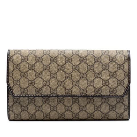 The pre-owned Gucci GG Supreme Clutch is a timeless accessory crafted from iconic coated canvas with refined leather trim, offering a polished look that complements both casual and dressy outfits. Featuring a front flap with magnetic snap closure and an interior slip compartment, this designer clutch combines elegant detailing with practical organization in a compact silhouette. Measuring 5.31 x 9.84 x 0.98 inches, it is an ideal choice for carrying your essentials with luxury and contemporary style.<br /><br /> Designed for both fashion and functionality, this authentic Gucci clutch is a versatile addition to any handbag collection. Its sleek profile, signature GG Supreme design, and secure closure make it easy to pair with a wide range of looks, whether for daytime errands, evening outings, or special occasions. With its classic appeal and convenient interior space, this handbag is perfect for everyday use.<br /><br /> This pre-owned Gucci GG Supreme Clutch is a smart choice for shoppers seeking authentic designer style at a better value. Condition Rating: B+. Comments: Exterior Back Worn, Creased, Stained With Others. Exterior Bottom Stained With Others, Worn. Exterior Corners Worn. Exterior Front Stained With Others, Worn, Repainted. Exterior Side Worn, Repainted. Exterior Top Stained With Others. Hardware Closure Scratched. Zipper Scratched. Interior Lining Stained With Others, Scratched. Inclusions: None. Model: GG Supreme Clutch. Item# QD5K0TUOAQHD4VPB. This is a great opportunity to own an authentic handbag at a more accessible price.