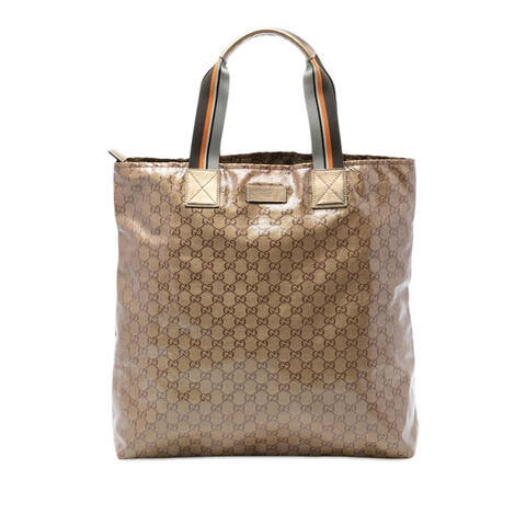 The pre-owned Gucci GG Crystal Vertical Web Tote is a sophisticated designer handbag that blends iconic style with practical versatility. Crafted with a durable coated canvas body, refined leather trim, and flat leather handles, this Gucci tote offers a polished look that works beautifully for daily wear or elevated outings. The top zip closure helps keep your essentials secure, while the spacious silhouette reflects luxury and contemporary style.<br /><br /> Designed for both fashion and functionality, this Gucci GG Crystal Vertical Web Tote features convenient interior zip and slip pockets to help organize your everyday essentials with ease. With dimensions of approximately 16.54 x 15.75 x 3.94 inches, it provides ample space for work, errands, or travel while maintaining a sleek designer appeal. Its timeless design and practical storage make it perfect for everyday use.<br /><br /> This authentic pre-owned Gucci handbag is a smart choice for anyone looking to invest in timeless luxury at a better value. Condition Rating: AB. Comments: Exterior Back Creased. Exterior Bottom Creased. Exterior Corners Worn. Exterior Front Worn. Exterior Handle/Strap Worn. Exterior Top Worn. Zipper Scratched. Interior Lining Worn. Inclusions: None. Model: GG Crystal Vertical Web Tote. Item# T1SZBFCQQIZWAQ7E. Pre-owned Gucci GG Crystal Vertical Web Tote Ladies T1SZBFCQQIZWAQ7E. This is a great opportunity to own an authentic handbag at a more accessible price.