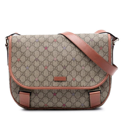 Pre-owned Gucci GG Supreme Stars Crossbody Ladies W7QXAWGAF1KCGYJY is a stylish designer handbag that blends iconic Gucci appeal with everyday versatility. Crafted with a printed coated canvas body, leather trim, and an adjustable flat leather strap, this crossbody bag offers a chic silhouette with practical wearability. The front flap with dual buckle closures adds a distinctive touch, making it an excellent choice for anyone seeking luxury and contemporary style.<br /><br /> Designed for both fashion and functionality, this Gucci GG Supreme Stars Crossbody features a well-sized interior with a slip pocket to help keep essentials organized throughout the day. With dimensions of 10.63 x 12.99 x 4.33 inches, it offers ample space for daily necessities while maintaining a sleek, easy-to-carry profile. Its signature design and hands-free crossbody style make it perfect for everyday use.<br /><br /> This authentic pre-owned Gucci handbag is a smart option for buyers looking to enjoy timeless designer fashion at a more attainable value. Comments: Exterior Back Stained With Others. Exterior Bottom Stained With Others. Exterior Corners Worn. Exterior Front Worn, Stained With Others, Scratched. Exterior Handle/Strap Stained With Others, Worn, Split, Creased, Cracked. Exterior Side Stained With Others, Scratched. Hardware Practical Attachment Scratched. Interior Lining Stained With Others. Interior Pocket Stained With Others. Inclusions: None. Model: GG Supreme Stars Crossbody. Item# W7QXAWGAF1KCGYJY. Condition Rating: B+. This is a great opportunity to own an authentic handbag at a more accessible price.