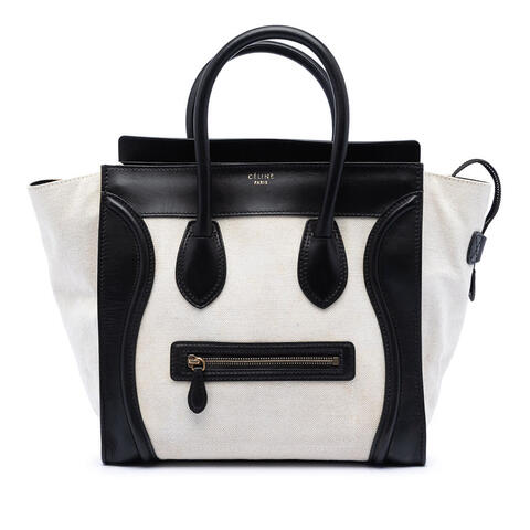 The Celine Mini Bicolor Canvas and Leather Luggage Tote is a chic designer handbag that combines durable canvas with refined leather trim for a sophisticated, modern look. Featuring rolled leather top handles, a detachable flat leather shoulder strap, a secure top zip closure, an exterior front zip pocket, and an interior slip pocket, this tote offers both style and practicality in a compact silhouette. Measuring 12.20 x 12.01 x 7.28 inches, it is an ideal choice for anyone seeking luxury and contemporary style.<br /><br /> Designed for both fashion and functionality, this pre-owned Celine Luggage Tote is a versatile handbag that transitions effortlessly from day to evening. Its structured design, convenient compartments, and signature bicolor finish make it a standout accessory for organizing essentials while elevating any outfit. Whether you're shopping for a timeless investment piece or a stylish everyday designer bag, this tote is perfect for everyday use.<br /><br /> This pre-owned Celine Mini Bicolor Canvas and Leather Luggage Tote is a smart choice for buyers looking for authentic designer fashion with lasting appeal. Condition Rating: B+. Comments: Exterior Back Scratched, Creased, Stained With Others. Exterior Bottom Creased, Scratched, Stained With Others. Exterior Corners Worn. Exterior Front Stained With Others, Scratched, Creased. Exterior Handle/Strap Scratched, Worn, Stained With Others, Cracked. Exterior Side Stained With Others. Exterior Top Stained With Others, Worn, Scratched. Hardware Closure Scratched. Hardware Practical Attachment Scratched. Zipper Scratched. Interior Lining Scratched, Stained With Others. Inclusions: None. Model: Mini Bicolor Canvas and Leather Luggage Tote. Item# R76XHXXB8AMIUIMW. This is a great opportunity to own an authentic handbag at a more accessible price.