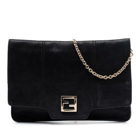 The pre-owned Fendi Nubuck FF Chain Flap crossbody bag is a chic and versatile designer accessory, crafted from soft nubuck leather with a refined silhouette. It features a gold-tone curb chain link strap, a front flap with a magnetic snap closure, and an interior slip pocket for added convenience. With dimensions of 6.69 x 9.45 x 0.39 inches, this compact handbag is an elegant choice for carrying your essentials with luxury and contemporary style.<br /><br /> Designed for both fashion and functionality, this authentic Fendi crossbody bag offers timeless appeal and practical organization in a sleek, lightweight design. The signature FF Chain Flap style makes it easy to pair with both casual and elevated looks, while the interior slip pocket helps keep small items within reach. Its compact profile and sophisticated detailing make it perfect for everyday use.<br /><br /> This pre-owned Fendi Nubuck FF Chain Flap Ladies bag is identified by Model: Nubuck FF Chain Flap and Item# DS42RSE1H2P6KWMI. Condition Rating: AB. Comments: Exterior Back Stained With Others. Exterior Front Stained With Others. Exterior Top Stained With Others. Hardware Closure Scratched. Hardware Practical Attachment Scratched. Interior Lining Stained With Others. Inclusions: None. This is a great opportunity to own an authentic handbag at a more accessible price.