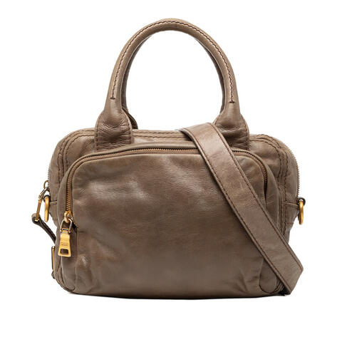 Pre-owned Prada Vitello Shine Bauletto Satchel Ladies QWZQKPXMT0N5898W (LPN403946)