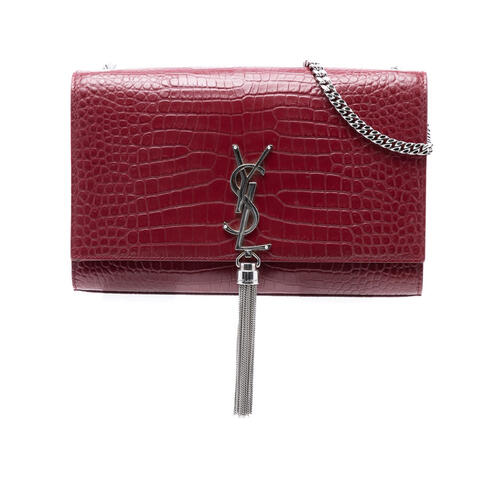 The Saint Laurent Medium Croc Embossed Leather Monogram Kate Tassel Crossbody is a chic and versatile handbag that brings together timeless design and elevated detail. Crafted with an embossed leather body, this elegant piece features the signature tassel accent, a silver-tone curb chain link shoulder strap, and a front flap with magnetic snap closure for a polished finish. Its compact yet refined silhouette, measuring 5.91 x 9.45 x 2.36 inches, makes it an ideal choice for day-to-night wear, offering luxury and contemporary style.<br /><br /> Designed for both fashion and functionality, this Saint Laurent crossbody includes an interior slip pocket to help keep your essentials organized while maintaining a sleek profile. The structured shape and classic monogram styling make it easy to pair with both casual and dressy looks, while the chain strap adds a sophisticated edge. Whether you're heading to brunch, an evening event, or running daily errands, this designer handbag is a stylish companion that is perfect for everyday use.<br /><br /> This pre-owned Saint Laurent handbag is a desirable option for collectors and fashion lovers seeking iconic designer style at a better value. Condition Rating: AB. Comments: Exterior Back Stained With Others. Exterior Corners Worn. Exterior Front Stained With Transfer of Color, Stained With Others, Worn. Exterior Side Stained With Others, Worn. Hardware Closure Scratched. Hardware Practical Attachment Scratched. Interior Lining Scratched, Stained With Others. Inclusions: None. Model: Medium Croc Embossed Leather Monogram Kate Tassel Crossbody. Item# 4C8X7DBBPI5B3HE1. Pre-owned Saint Laurent Medium Croc Embossed Leather Monogram Kate Tassel Crossbody Ladies 4C8X7DBBPI5B3HE1. This is a great opportunity to own an authentic handbag at a more accessible price.