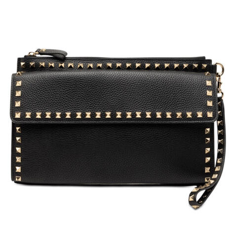 Pre-owned Valentino Grained Calfskin Rockstud Wristlet Clutch Ladies FQN4WLOQ911JK943 (LPN404012)