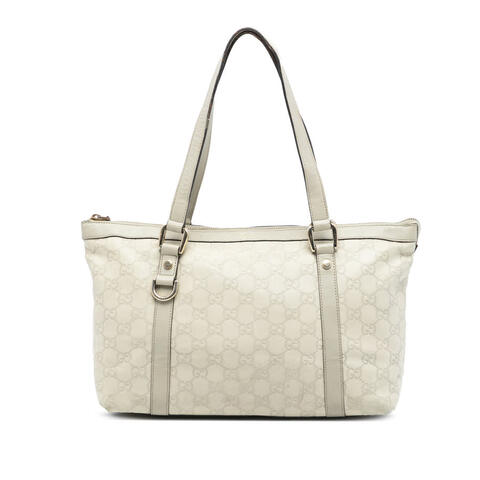 The pre-owned Gucci ssima Abbey D Ring Tote is a timeless designer handbag that blends iconic craftsmanship with everyday elegance. Crafted with an embossed leather body, this Gucci tote bag features flat leather handles, a secure top zip closure, and convenient interior zip and slip pockets, making it a stylish and practical choice for daily wear. With dimensions of 9.06 x 12.40 x 4.72 inches, it offers a versatile size for carrying your essentials while showcasing luxury and contemporary style.<br /><br /> Designed for both fashion and functionality, this authentic Gucci Guccissima Abbey D Ring Tote delivers the refined look of a classic luxury handbag with the convenience todays buyers want. The structured silhouette, signature embossed leather, and thoughtfully designed interior make it an excellent option for work, shopping, or casual outings, making it perfect for everyday use.<br /><br /> This pre-owned Gucci tote is a smart choice for anyone seeking a genuine luxury handbag at a better value. Condition Rating: B+. Comments: Exterior Back Stained With Others, Worn. Exterior Bottom Stained With Pen Mark, Worn, Stained With Others. Exterior Corners Worn, Stained With Others. Exterior Front Creased, Stained With Others, Stained With Transfer of Color, Worn. Exterior Handle/Strap Creased, Worn, Stained With Others. Exterior Side Stained With Others, Worn. Hardware Closure Scratched. Hardware Practical Attachment Scratched. Zipper Rusty/Tarnished, Scratched. Interior Lining Worn, Stained With Others. Interior Pocket Stained With Others. Inclusions: None. Model: Guccissima Abbey D Ring Tote. Item# 5CNQSU93B6PQLGRE. This is a great opportunity to own an authentic handbag at a more accessible price.