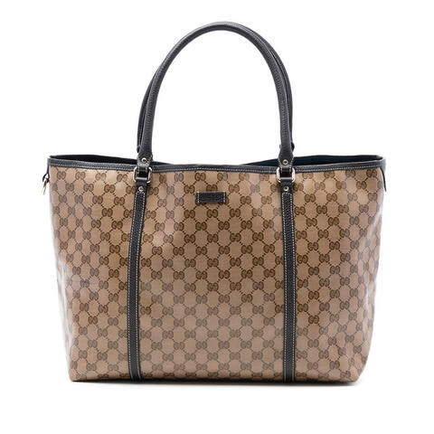 The pre-owned Gucci GG Crystal Joy Tote is a chic and versatile designer handbag that blends iconic style with everyday practicality. Crafted with a durable coated canvas body and refined leather trim, this elegant tote features rolled leather straps, an open top with a magnetic snap closure, and an interior slip pocket for easy organization. Its spacious silhouette and timeless Gucci appeal make it a standout accessory for anyone seeking luxury and contemporary style.<br /><br /> Designed for both fashion and functionality, this Gucci GG Crystal Joy Tote offers ample room for your daily essentials while maintaining a polished and sophisticated look. Measuring approximately 12.60 inches high, 14.96 inches wide, and 6.30 inches deep, it is an ideal size for work, shopping, travel, or daily errands. With its classic design and practical interior storage, this stylish tote is perfect for everyday use.<br /><br /> This authentic pre-owned Gucci handbag is a smart choice for buyers looking to enjoy luxury designer fashion at a more affordable value. Condition Rating: B+. Comments: Exterior Front Stained With Transfer of Color. Exterior Handle/Strap Worn. Exterior Top Worn. Hardware Closure Scratched. Hardware Practical Attachment Scratched. Interior Lining Stained With Others. Interior Pocket Stained With Others. Inclusions: None. Model: GG Crystal Joy Tote. Item# 4GKCS6NPA229QCFF. This is a great opportunity to own an authentic handbag at a more accessible price.