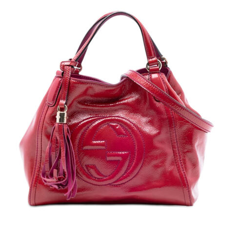 The Gucci Small Patent Soho Satchel is a chic and versatile designer handbag crafted from glossy patent leather, offering a polished look that instantly elevates any wardrobe. Featuring flat leather handles with tassel details, a detachable flat strap, an open top with lobster clasp closure, and convenient interior zip and slip pockets, this satchel combines signature Gucci appeal with practical organization in a compact silhouette. Its refined shape and timeless design make it an excellent choice for anyone seeking luxury and contemporary style.<br /><br /> Designed for both fashion and functionality, this pre-owned Gucci satchel is ideal for carrying your daily essentials while maintaining an elegant, sophisticated appearance. The thoughtfully designed interior pockets help keep belongings organized, while the detachable shoulder strap adds styling versatility for handheld or shoulder wear. With dimensions of 8.66 x 10.24 x 5.51 inches, this designer bag offers a well-balanced size that is perfect for everyday use.<br /><br /> Pre-owned Gucci Small Patent Soho Satchel Ladies 4CYD635J1OMU6XHZ. Model: Small Patent Soho Satchel. Item# 4CYD635J1OMU6XHZ. Inclusions: Charm, Shoulder Strap. Condition Rating: AB. Comments: Exterior Back Stained With Others. Exterior Corners Stained With Others. Exterior Front Stained With Others. Exterior Handle/Strap Stained With Others. Exterior Top Worn, Cracked. Hardware Embellishment Scratched. Hardware Practical Attachment Scratched. Zipper Scratched. Interior Lining Stained With Others. Interior Pocket Stained With Others. This is a great opportunity to own an authentic handbag at a more accessible price.