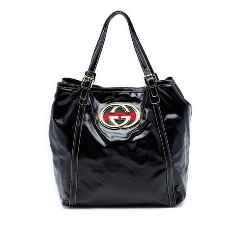 Pre-owned Gucci Patent Dialux Britt Web Tote Ladies IM0H2BRVE1LO98VV - 162447-213317 (LPN404076)