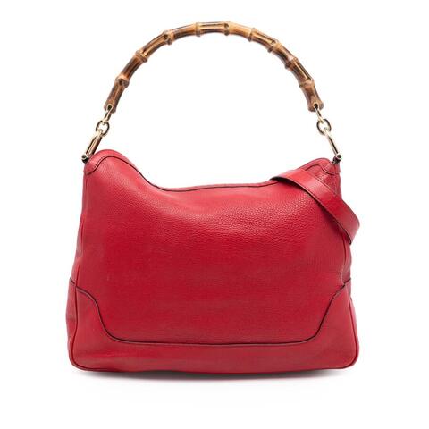 The pre-owned Gucci Calfskin Bamboo Diana Satchel is a timeless designer handbag that blends iconic craftsmanship with modern elegance. Crafted from supple calfskin leather, this satchel features Guccis signature bamboo handle, a detachable flat leather strap, an open top, and an interior zip and slip pocket for organized storage. With dimensions of 12.40 x 15.55 x 4.92 inches, it offers a spacious yet refined silhouette that makes a statement with luxury and contemporary style.<br /><br /> Designed for both fashion and functionality, this authentic Gucci Bamboo Diana Satchel is an excellent choice for anyone seeking a versatile luxury handbag. The classic design pairs beautifully with both casual and polished looks, while the included shoulder strap adds convenient carrying options throughout the day. Its roomy interior and practical pocket layout make it ideal for keeping essentials close at hand, perfect for everyday use.<br /><br /> This pre-owned Gucci handbag includes the shoulder strap and is identified as Model: Calfskin Bamboo Diana Satchel, Item# 8C2N8WIYZWUDBBWV. Condition Rating: B+. Comments: Exterior Back Worn, Creased, Scratched, Stained With Others. Exterior Bottom Worn, Creased. Exterior Corners Worn, Stained With Others. Exterior Front Scratched, Creased, Worn. Exterior Handle/Strap Scratched, Worn. Exterior Side Stained With Others, Worn. Exterior Top Cracked, Worn. Hardware Practical Attachment Scratched. Zipper Scratched. Interior Lining Stained With Others, Creased. Interior Pocket Stained With Others. This is a great opportunity to own an authentic handbag at a more accessible price.