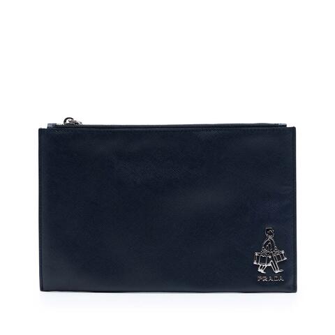 The Prada Saffiano Voyage Document Holder is a sleek and sophisticated pre-owned clutch bag crafted from durable leather, featuring a secure top zip closure and convenient interior slip pockets for easy organization. Its compact silhouette makes it ideal for carrying your essentials in refined style, offering the perfect balance of elegance and practicality with luxury and contemporary style.<br /><br /> Designed for both fashion and functionality, this Prada document holder is a versatile accessory that transitions effortlessly from day to evening. The thoughtfully designed interior helps keep cards, cash, and small essentials neatly arranged, making it a smart choice for anyone seeking a designer piece that is perfect for everyday use.<br /><br /> This authentic pre-owned Prada Saffiano Voyage Document Holder measures approximately 5.71 inches high x 9.06 inches wide x 0.39 inches deep. Model: Saffiano Voyage Document Holder. Item# 9QCSEL42U8UDN8MF. Rating: AB. Condition for pre-owned item: Exterior corners worn. Exterior top worn. Hardware practical attachment scratched. Zipper scratched. Interior lining stained with others and worn. Inclusions: None. This is a great opportunity to own an authentic handbag at a more accessible price.