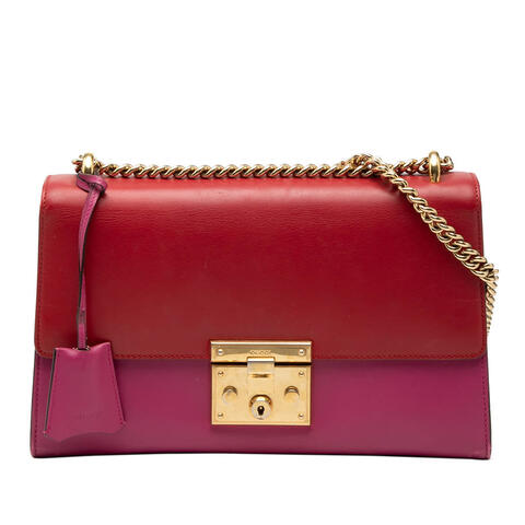 The pre-owned Gucci Medium Bicolor Leather Padlock Shoulder Bag is a timeless designer accessory that combines elegance with everyday versatility. Crafted from bicolor leather, this chic shoulder bag features chain-link straps, a signature front flap with a push-lock closure, an exterior back slip pocket, and interior zip and slip pockets for organized storage. With dimensions of 7.09 x 11.81 x 3.94 inches, it offers a sleek yet practical silhouette that reflects luxury and contemporary style.<br /><br /> Designed for both fashion and functionality, this Gucci shoulder bag is ideal for carrying your daily essentials while elevating any outfit. The refined padlock design, sophisticated color contrast, and thoughtfully arranged pockets make it a stylish and practical choice for work, shopping, or casual outings. Its iconic designer appeal and usable interior make it perfect for everyday use.<br /><br /> This authentic Gucci handbag includes Key and Charm and is an excellent option for collectors and fashion lovers seeking a coveted luxury piece at a better value. Condition Rating: B+. Comments: Hardware Closure Scratched, Rusty/Tarnished. Exterior Corners Worn. Exterior Back Scratched, Worn. Zipper Scratched. Exterior Side Stained With Others, Scratched. Exterior Pocket Scratched, Stained With Others. Exterior Front Stained With Others, Scratched. Hardware Practical Attachment Scratched. Exterior Top Scratched, Stained With Transfer of Color, Worn. Interior Lining Scratched, Stained With Others. Hardware Key Scratched. Exterior Bottom Worn, Stained With Others. This is a great opportunity to own an authentic handbag at a more accessible price.