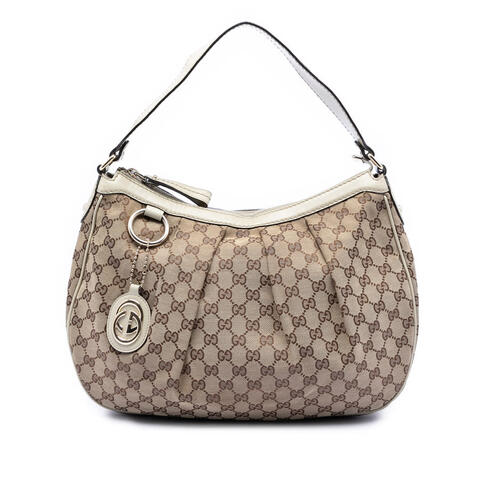 The pre-owned Gucci GG Canvas Sukey Shoulder Bag is a timeless designer accessory that blends signature elegance with everyday versatility. Crafted with Guccis iconic GG canvas and finished with refined leather trim, this shoulder bag features a comfortable flat leather strap, a secure top zip closure, and a well-organized interior with zip and slip pockets. With dimensions of 11.42 x 14.96 x 4.33 inches, it offers generous space while maintaining a sleek silhouette, making it an excellent choice for anyone who appreciates luxury and contemporary style.<br /><br /> Designed for both fashion and functionality, this authentic Gucci Sukey shoulder bag is ideal for carrying your daily essentials in polished designer style. The classic canvas exterior and leather accents create a sophisticated look that pairs effortlessly with both casual and elevated outfits, while the practical interior compartments help keep your belongings organized throughout the day. Whether you're adding to a luxury handbag collection or searching for a statement piece with lasting appeal, this bag is perfect for everyday use.<br /><br /> This pre-owned Gucci GG Canvas Sukey Shoulder Bag is rated B+ and remains a stylish, desirable option for luxury resale shoppers seeking authentic designer value. As a pre-owned item, it shows signs of wear consistent with gentle use, including staining on the exterior side, bottom, top, back, and front; worn exterior corners; scratches on the hardware embellishment, practical attachment, and zipper; wear and staining on the handle/strap; and staining to the interior pocket and lining. Inclusions: Charm. Model: GG Canvas Sukey Shoulder Bag. Item# SPOU35UZYA5AA42P. This is a great opportunity to own an authentic handbag at a more accessible price.