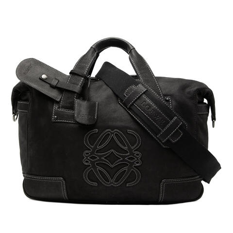 The pre-owned Loewe Nubuck Anagram Satchel is a sophisticated designer handbag that blends timeless appeal with modern versatility. Crafted with a soft nubuck leather body, this elegant satchel features flat leather handles, a detachable flat canvas strap with a leather guard, a secure top zip closure, and convenient interior zip and slip pockets for easy organization. With dimensions of 11.02 x 15.35 x 7.87 inches, it offers a spacious yet refined silhouette that elevates any wardrobe with luxury and contemporary style.<br /><br /> Designed for both fashion and functionality, this Loewe satchel is an excellent choice for women seeking a premium handbag that complements both casual and polished looks. The included padlock, key, name tag, shoulder strap, dust bag, and charm add extra value and authenticity, making this designer piece even more desirable. Its practical interior layout and comfortable carrying options make it a stylish companion that is perfect for everyday use.<br /><br /> This authentic pre-owned Loewe Nubuck Anagram Satchel, model 231IALKFVC3H6N1R, is a smart option for buyers who appreciate luxury craftsmanship at a better value. Condition Rating: AB. Comments: Exterior Bottom Stained With Others. Exterior Corners Worn. Exterior Front Worn. Exterior Handle/Strap Cracked, Worn. Exterior Pocket Stained With Others. Hardware Key Scratched. Hardware Practical Attachment Scratched. Zipper Scratched. Interior Lining Stained With Others. This is a great opportunity to own an authentic handbag at a more accessible price.