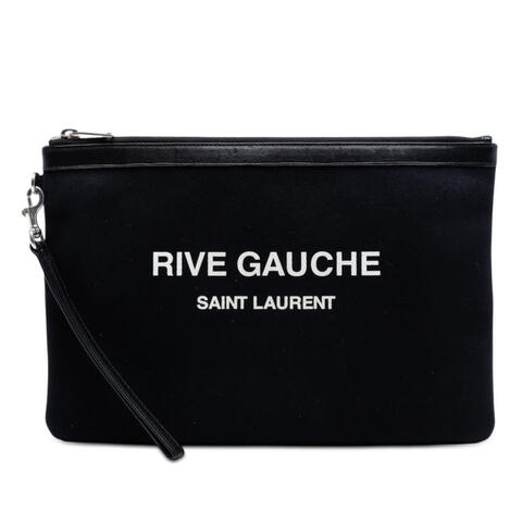 This Saint Laurent Canvas Rive Gauche Clutch is a chic and versatile accessory, crafted with a durable canvas body and refined leather trim for a polished designer look. It features a detachable flat leather wrist strap, a secure top zip closure, and an interior slip pocket to keep essentials organized. Measuring 8.07 x 11.81 x 0.39 inches, this elegant clutch is ideal for carrying your daily necessities with luxury and contemporary style.<br /><br /> Designed for both fashion and functionality, this pre-owned Saint Laurent clutch offers the perfect balance of style and convenience. Its sleek silhouette and thoughtfully designed interior make it easy to carry for daytime errands, evenings out, or travel. With its iconic appeal and practical size, this designer handbag is a sophisticated accessory that is perfect for everyday use.<br /><br /> Pre-owned Saint Laurent Canvas Rive Gauche Clutch Ladies YTKB224PSS7V19CH. Model: Canvas Rive Gauche Clutch. Item# YTKB224PSS7V19CH. Inclusions: None. Rating: B+. Condition for preown: Exterior Back Stained With Others, Scratched. Exterior Corners Worn. Exterior Front Scratched, Stained With Others, Worn. Exterior Handle/Strap Stained With Others. Hardware Practical Attachment Scratched. Zipper Scratched. Interior Lining Stained With Others, Loose Stiching. Interior Pocket Stained With Others. This is a great opportunity to own an authentic handbag at a more accessible price.
