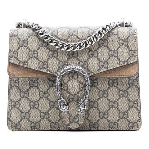 The Gucci Small GG Supreme Dionysus Crossbody is a timeless designer handbag crafted from iconic GG Supreme coated canvas with soft suede leather trim. Finished with a silver-tone chain strap and a top flap with a magnetic snap button closure, this elegant silhouette offers a refined look that transitions effortlessly from day to night. Its compact yet sophisticated design makes it an ideal choice for anyone seeking luxury and contemporary style.<br /><br /> Designed for both fashion and functionality, this pre-owned Gucci Dionysus Crossbody offers just the right amount of space for your daily essentials while maintaining a sleek, polished profile. The signature materials, classic structure, and versatile chain strap make it easy to pair with a wide range of outfits, whether you are dressing casually or elevating your evening look. With dimensions of 6.69 x 7.87 x 1.57 inches, it is a stylish and practical designer handbag that is perfect for everyday use.<br /><br /> This pre-owned Gucci Small GG Supreme Dionysus Crossbody, model XFCICQ3LEDHGPJG1, is a desirable piece for collectors and fashion lovers alike. Condition Rating: AB. Comments: Exterior Back Worn. Exterior Bottom Stained With Pen Mark. Exterior Corners Worn. Exterior Front Worn. Hardware Closure Scratched. Hardware Practical Attachment Scratched. Interior Lining Worn. Inclusions: None. Despite signs of prior wear, it remains a chic and authentic luxury accessory with lasting appeal. This is a great opportunity to own an authentic handbag at a more accessible price.