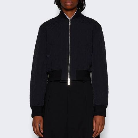 Burberry Ladies Outerwear. Fashion category: Coats & Jackets. SKU: 8093872. Color: Black. Burberry Cropped Quilted Bomber Jacket. This quilted bomber jacket is crafted from crinkled nylon and features a cropped silhouette, two-way zip closure, side press-stud welt pockets, and a sleeve patch pocket. Its finished with rib-knit trims and Burberry check lining for a signature touch. Material: 100% Polyamide.