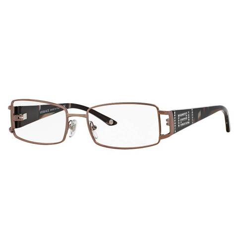 Versace Eyeglasses. Series number: VE1163B. Color code: 1013. Shape: Rectangular. Lens Width: 52 mm. Lens Bridge: 16 mm. Arm Length: 130 mm. Frame Material: Metal;Plastic. Frame Color: Brown;Rose Gold. Lenses Type: Demo. Rim Style: Full-Rim. UPC/EAN code: 725125701259. Versace Demo Rectangular Ladies Eyeglasses VE1163B 1013 52.<br/><br/>Manufacturer's Packaging Included. Packaging Size And Color May Vary.