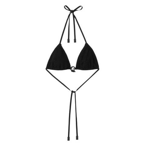 Burberry Ladies Swim. Fashion category: Swimsuits. SKU: 8090112. Color: Black. Burberry Crinkled Nylon Bikini Top. Triangle bikini top with tie-up shoulder straps and a sleeveless design. 94% Polyamide, 4% Elastane. Made in Portugal.