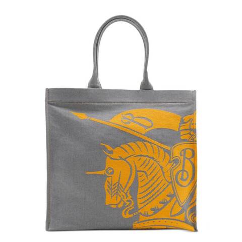 Burberry Mens Tote. SKU: 8090516. Barcode: 5045706518867. Color: Sunflower. Size: Height: 43cm x Width: 47cm. Burberry Sunflower EKD Canvas Tote Bag. The Burberry Sunflower EKD Canvas Tote Bag is crafted in durable canvas and features the signature Equestrian Knight motif in jacquard, accented with contrast stitching. It has two top handles, an open-top design, and a spacious main compartment. Material: Canvas 100% Made in Italy.