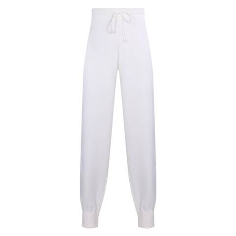 Burberry Ladies Bottoms. Fashion category: Pants & Leggings. SKU: 8094448. Color: Chalk. Burberry Logo Embroidered Knitted Track Pants. These track pants are crafted from a wool-blend with a knitted construction. Designed with a straight leg, they feature an elasticated drawstring waistband, ribbed ankles, a rear patch pocket, and an embroidered logo at the back for a refined, comfortable fit. 85% Wool, 14% Polyamide, 1% Elastane.