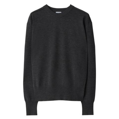 Burberry Mens Tops. Fashion category: Cardigans & Sweaters. SKU: 8095489. Color: Grey. Burberry Lightweight Crew-Neck Wool Jumper. This lightweight wool sweater is knitted to a regular fit and styled with a classic crew neck. Exposed shoulder seams add a subtle design detail, while rib-knit trims and a knitted Equestrian Knight Design at the waist complete the look with a refined, modern finish. 100% wool.