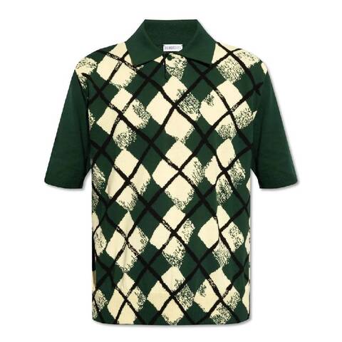 Burberry Mens Tops. Fashion category: T-Shirts & Henleys. SKU: 8083193. Color: Ivy. Burberry Ribbed-Knit Polo Shirt Checked Design. This ribbed-knit polo shirt features a checked design, short sleeves, and a straight hem for a classic, versatile look. 100% Cotton, Made in Italy.