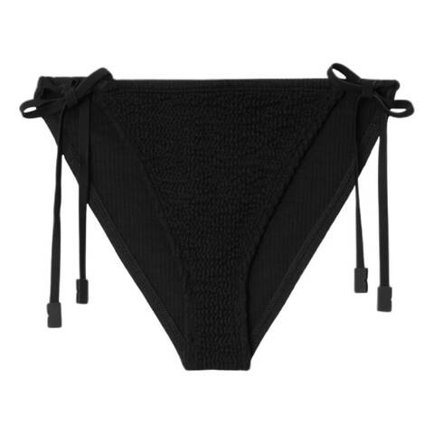 Burberry Ladies Swim. Fashion category: Swimsuits. SKU: 8090114. Color: Black. Burberry Crinkled Bikini Briefs. A stretch nylon bikini brief featuring a crinkled texture and adjustable side ties. 96% Polyamide; 4% Elastane. Made in Portugal.