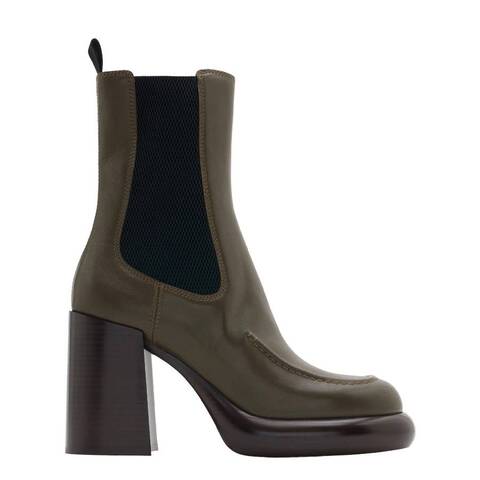 Burberry Ladies Boots. SKU: 8096702. . Color: Loch. Burberry Womens Leather Wedge Chelsea Boots. These boots feature a chic slip-on style with elasticated side panels, a 95mm block heel for both comfort and height, and a pull-tab at the heel for easy wear. The round toe and branded quilted insole add a luxurious finishing touch to this statement piece. Made in Italy. Upper Material: 90% Calfskin, 6% Polyester, 4% Elastane. Made in Italy. <br/><br/><b>Please visit the brand website for sizing information.</b>