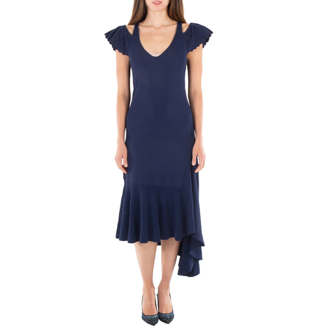 J.W. Anderson JW Anderson Navy Blue Ribbed Ruffle Dress, Size Medium - KW1029-YN0298 (LPN4098)