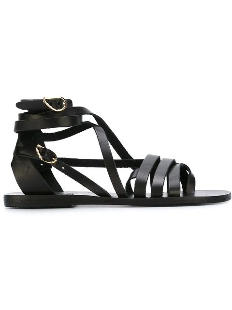 Black bos taurus and leather 'Satira' sandals from Ancient Greek Sandals.