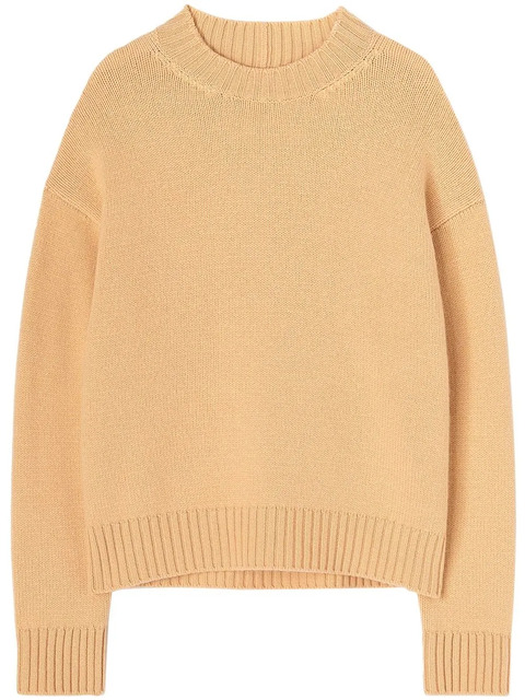 orange cashmere blend knitted construction fine knit crew neck extra-long sleeves ribbed cuffs ribbed hem