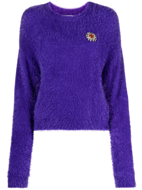 Moschino floral-appliqué brushed jumper - 20320520 (LPN44888)